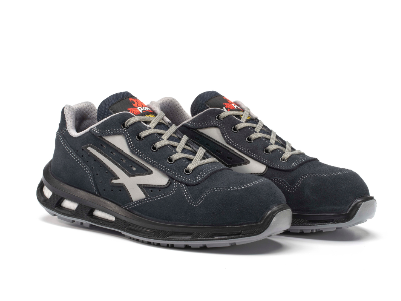Safety shoes low, light and comfortable upower line Red Lion, with soft suede upper perforated ultra breathable and aluminum toe cap, puncture, non-slip and sole PU/ PU infinergy S1P SRC ESD.