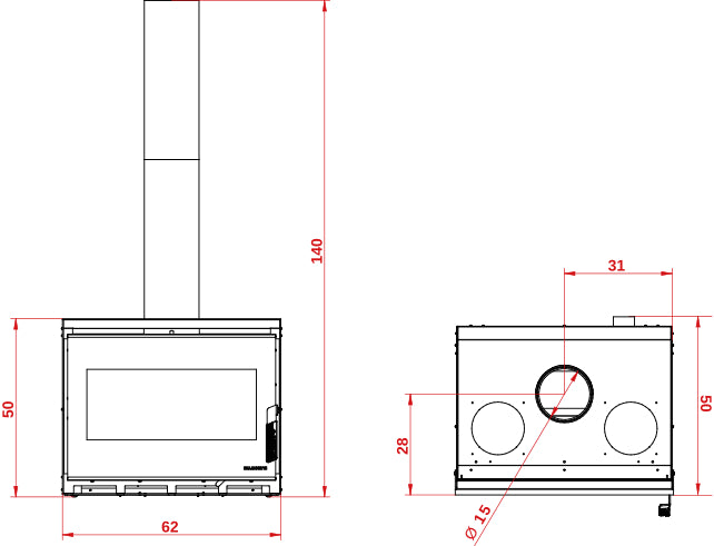 Focolare da inserimento dalle alte prestazioni (il livello di prestazione ambientale è 5 stelle). L'ingombro contenuto li rende ideali sia per ripristinare vecchi caminetti aperti che per la realizzazione di un caminetto nuovo. Possibilità sia di ventilazione frontale che di canalizzazione con i kit dedicati.
