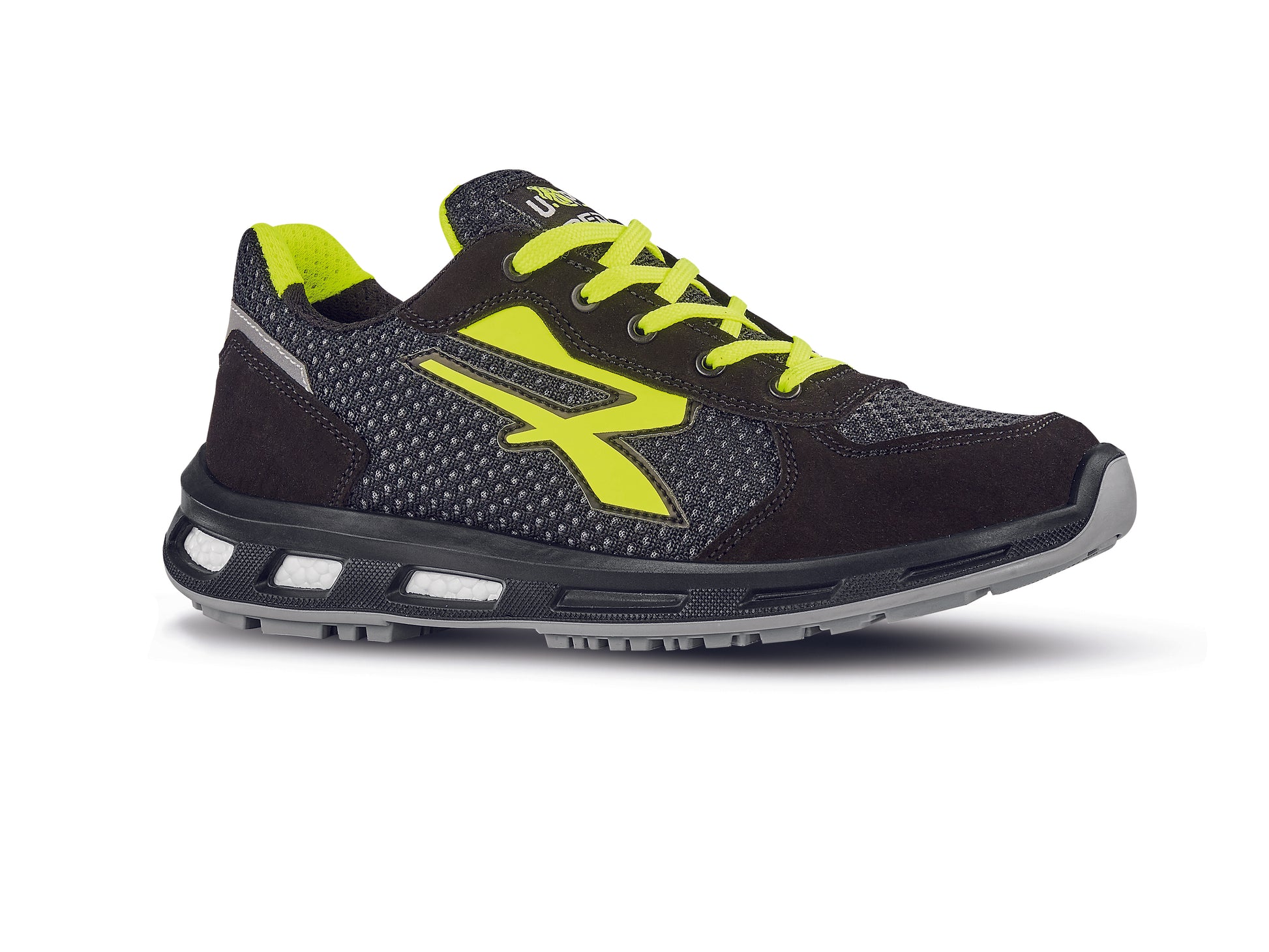 Scarpe antinfortunistiche basse, leggere e comode U-Power della linea Red Pro, con tomaia in nylon ultra traspiranti e morbida pelle scamosciata, antiperforazione, antiscivolo e suola PU/PU infinergy, 01 FO SRC ESD.