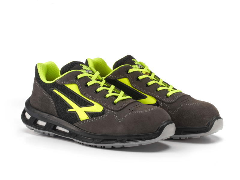 Scarpe antinfortunistiche basse, leggere e comode u power della linea Red Lion, con tomaia in nylon ultra traspiranti e morbida pelle scamosciata, puntale in alluminio, antiperforazione, antiscivolo e suola PU/PU infinergy, S1P SRC ESD